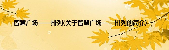 大家好,智慧广场——排列,关于智慧广场——排列的简介很多人还不知道,现在让我们一起来看看吧!