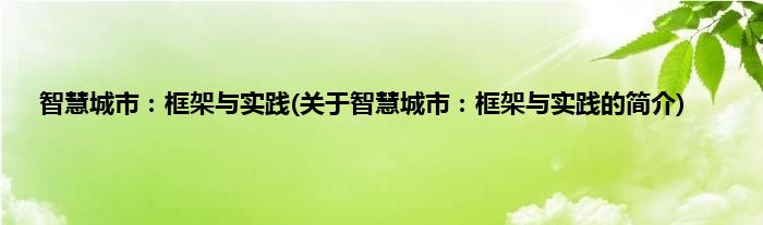本文关于智慧城市:框架与实践的简介就讲解完毕,希望对大家有所帮助。