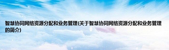 大家好,智慧协同网络资源分配和业务管理,关于智慧协同网络资源分配和业务管理的简介很多人还不知道,现在让我们一起来看看吧!