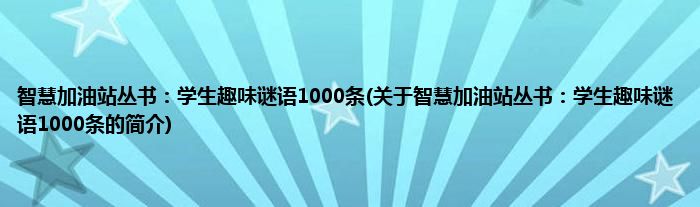 本文关于智慧加油站丛书:学生趣味谜语1000条的简介就讲解完毕,希望对大家有所帮助。