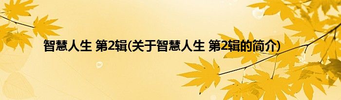 本文关于智慧人生 第2辑的简介就讲解完毕,希望对大家有所帮助。