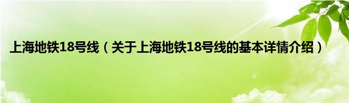 本文关于上海地铁18号线的基本详情介绍就讲解完毕,希望对大家有所帮助。