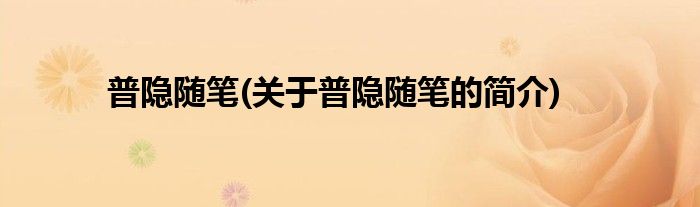 本文关于普隐随笔的简介就讲解完毕,希望对大家有所帮助。