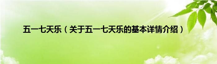 本文关于五一七天乐的基本详情介绍就讲解完毕,希望对大家有所帮助。