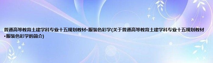 本文关于普通高等教育土建学科专业十五规划教材·服装色彩学的简介就讲解完毕,希望对大家有所帮助。