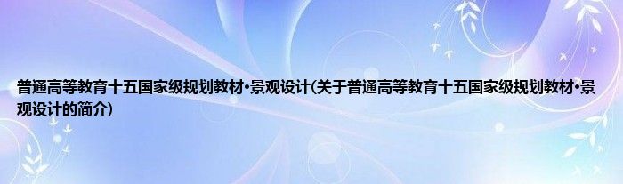 本文关于普通高等教育十五国家级规划教材·景观设计的简介就讲解完毕,希望对大家有所帮助。