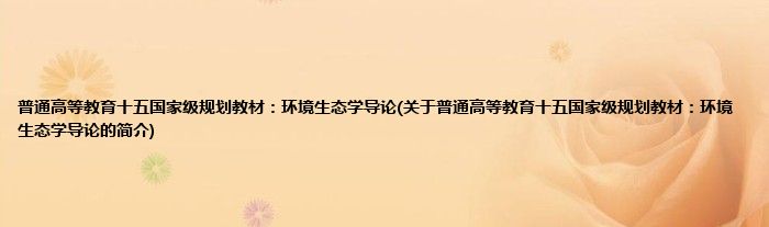 1、 《普通高等教育十五国家级规划教材:环境生态学导论》是高等教育出版社出版的图书。