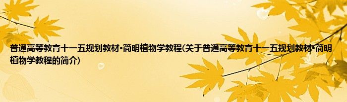 本文关于普通高等教育十一五规划教材·简明植物学教程的简介就讲解完毕,希望对大家有所帮助。