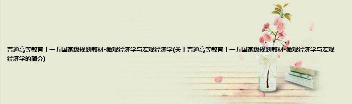 大家好,普通高等教育十一五国家级规划教材·微观经济学与宏观经济学,关于普通高等教育十一五国家级规划教材·微观经济学与宏观经济学的简介很多人还不知道,现在让我们一起来看看吧!