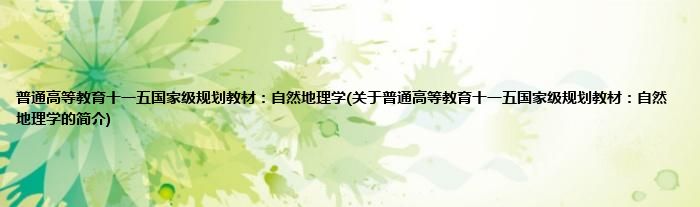 本文关于普通高等教育十一五国家级规划教材:自然地理学的简介就讲解完毕,希望对大家有所帮助。