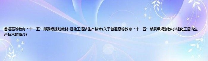 1、 《普通高等教育"十一五"部委级规划教材·轻化工清洁生产技术(本科)》是我国高校轻化工程专业“十一五”部委级规划教材。