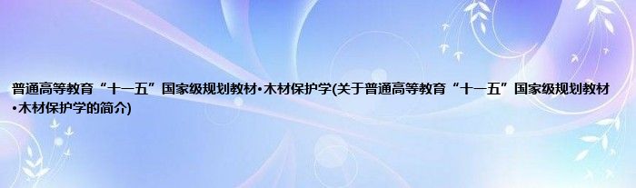 本文关于普通高等教育“十一五”国家级规划教材·木材保护学的简介就讲解完毕,希望对大家有所帮助。