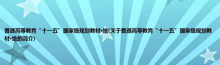 本文关于普通高等教育“十一五”国家级规划教材·地的简介就讲解完毕,希望对大家有所帮助。