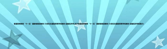 本文关于普通高等教育“十一五”国家级规划教材·21世纪交通版高等学校教材·运输经济学的简介就讲解完毕,希望对大家有所帮助。