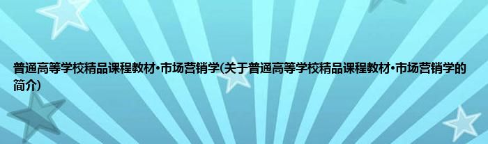 本文关于普通高等学校精品课程教材·市场营销学的简介就讲解完毕,希望对大家有所帮助。