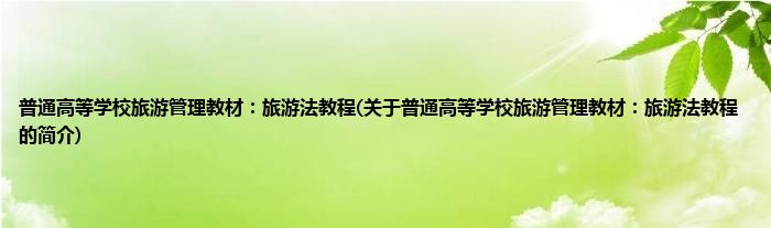 本文关于普通高等学校旅游管理教材:旅游法教程的简介就讲解完毕,希望对大家有所帮助。