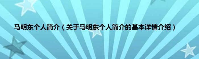本文关于马明东个人简介的基本详情介绍就讲解完毕,希望对大家有所帮助。