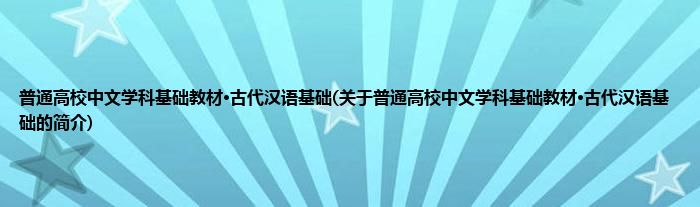 本文关于普通高校中文学科基础教材·古代汉语基础的简介就讲解完毕,希望对大家有所帮助。