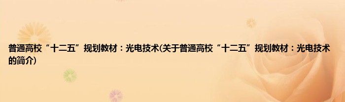 本文关于普通高校“十二五”规划教材:光电技术的简介就讲解完毕,希望对大家有所帮助。