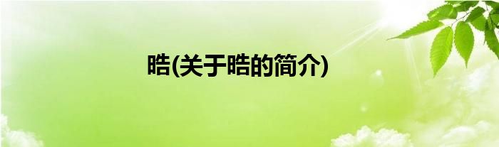 1、 晧(hào)是一个汉字。