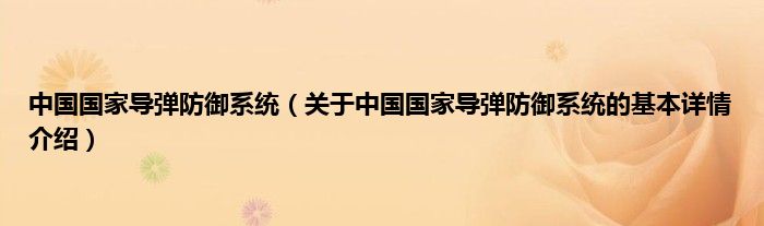本文关于中国国家导弹防御系统的基本详情介绍就讲解完毕,希望对大家有所帮助。