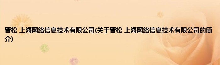 本文关于晋松 上海网络信息技术有限公司的简介就讲解完毕,希望对大家有所帮助。