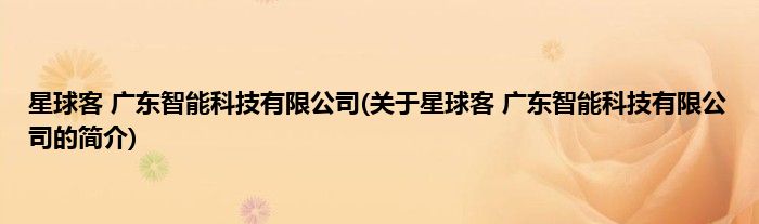 本文关于星球客 广东智能科技有限公司的简介就讲解完毕,希望对大家有所帮助。
