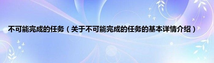 本文关于不可能完成的任务的基本详情介绍就讲解完毕,希望对大家有所帮助。