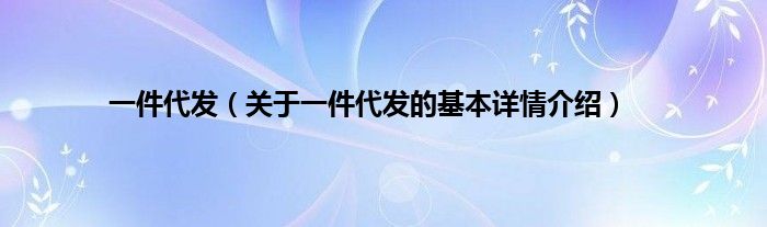 本文关于一件代发的基本详情介绍就讲解完毕,希望对大家有所帮助。