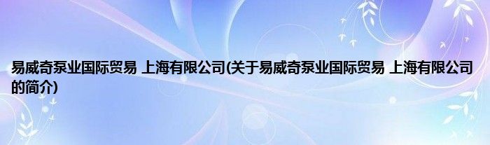 本文关于易威奇泵业国际贸易 上海有限公司的简介就讲解完毕,希望对大家有所帮助。