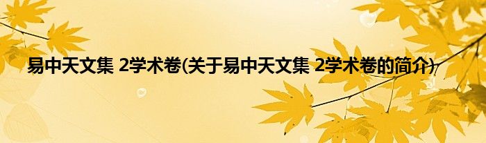1、 《易中天文集(2学术卷)》是2008年由上海文艺出版社出版的图书。