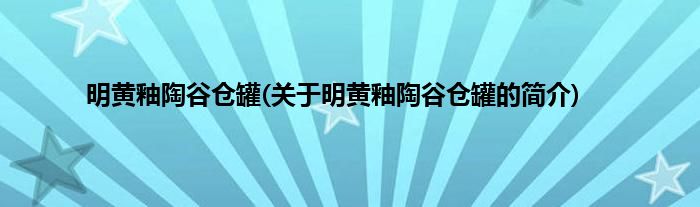 本文关于明黄釉陶谷仓罐的简介就讲解完毕,希望对大家有所帮助。
