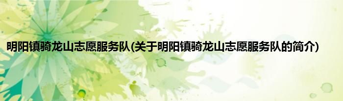 本文关于明阳镇骑龙山志愿服务队的简介就讲解完毕,希望对大家有所帮助。
