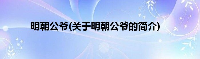 大家好,明朝公爷,关于明朝公爷的简介很多人还不知道,现在让我们一起来看看吧!