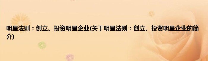 本文关于明星法则:创立、投资明星企业的简介就讲解完毕,希望对大家有所帮助。