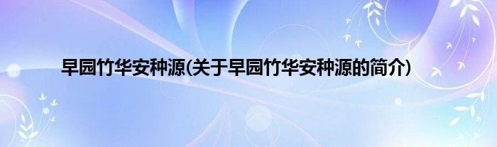 大家好,早园竹华安种源,关于早园竹华安种源的简介很多人还不知道,现在让我们一起来看看吧!
