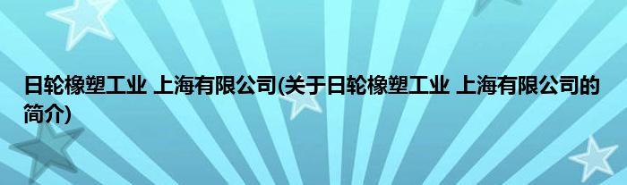 本文关于日轮橡塑工业 上海有限公司的简介就讲解完毕,希望对大家有所帮助。