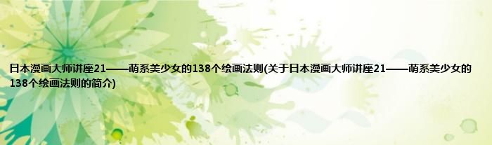 本文关于日本漫画大师讲座21——萌系美少女的138个绘画法则的简介就讲解完毕,希望对大家有所帮助。