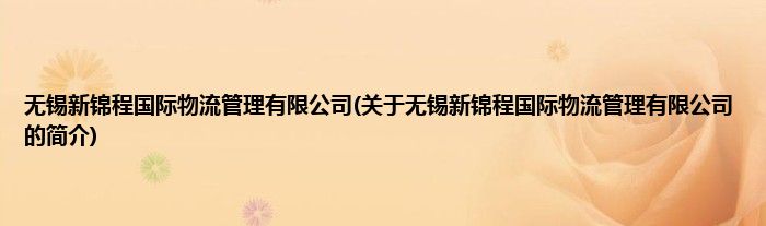 本文关于无锡新锦程国际物流管理有限公司的简介就讲解完毕,希望对大家有所帮助。