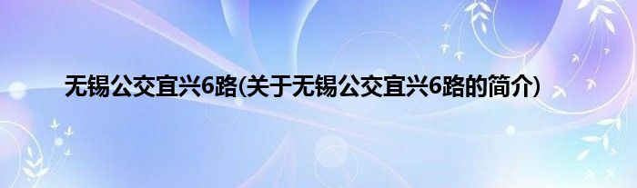 大家好,无锡公交宜兴6路,关于无锡公交宜兴6路的简介很多人还不知道,现在让我们一起来看看吧!