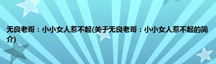 大家好,无良老哥:小小女人惹不起,关于无良老哥:小小女人惹不起的简介很多人还不知道,现在让我们一起来看看吧!