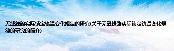 无缝线路实际锁定轨温变化规律的研究(关于无缝线路实际锁定轨温变化规律的研究的简介)