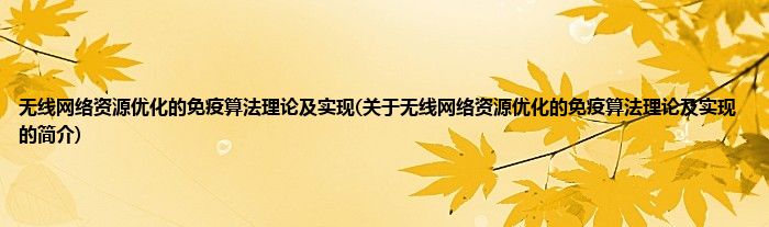 无线网络资源优化的免疫算法理论及实现(关于无线网络资源优化的免疫算法理论及实现的简介)