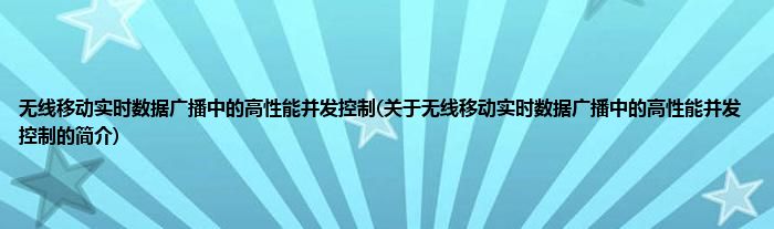 大家好,无线移动实时数据广播中的高性能并发控制,关于无线移动实时数据广播中的高性能并发控制的简介很多人还不知道,现在让我们一起来看看吧!