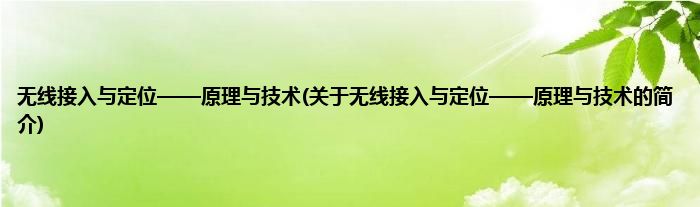 大家好,无线接入与定位——原理与技术,关于无线接入与定位——原理与技术的简介很多人还不知道,现在让我们一起来看看吧!