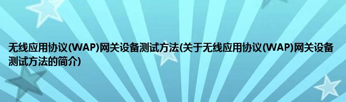 本文关于无线应用协议(WAP)网关设备测试方法的简介就讲解完毕,希望对大家有所帮助。