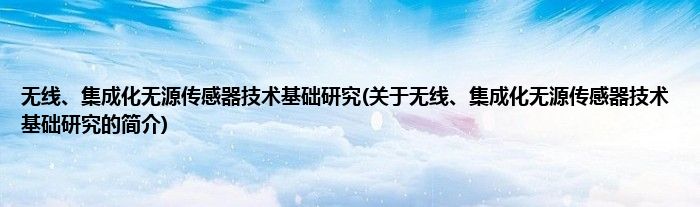大家好,无线、集成化无源传感器技术基础研究,关于无线、集成化无源传感器技术基础研究的简介很多人还不知道,现在让我们一起来看看吧!