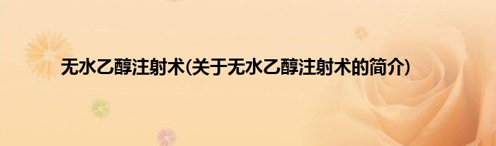 本文关于无水乙醇注射术的简介就讲解完毕,希望对大家有所帮助。
