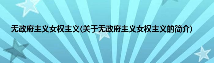 本文关于无政府主义女权主义的简介就讲解完毕,希望对大家有所帮助。