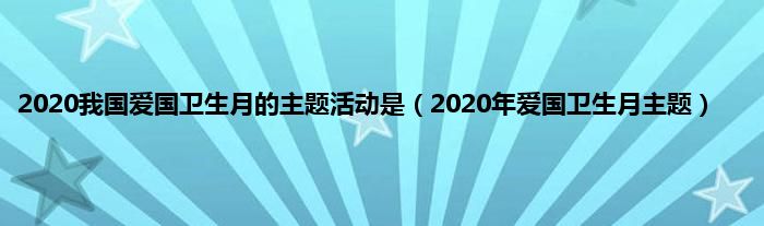 大家好,精选小编来为大家解答以上问题。2020我国爱国卫生月的主题活动是,2020年爱国卫生月主题很多人还不知道,现在让我们一起来看看吧!